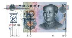 42.【单选题】10元,下列选项中对图片上标⑫防伪特征名称描述正确的是()。