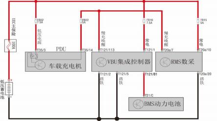 1、下图为某品牌纯电动汽车整车高压连接线图,当车辆充电时闭合的接触器有()。