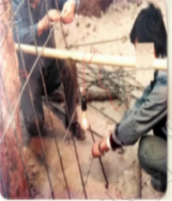 图1中,人字梯中间扎绳已松开,存在隐患。应按规范使用,人字梯中间要系有扎绳并要牢固可靠。
