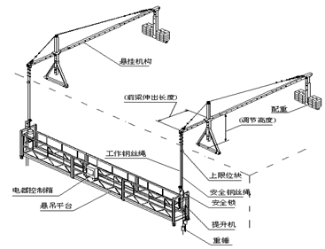 186、悬挂机构是架设于建筑物或构筑物上,通过()悬挂悬吊平台的机构。