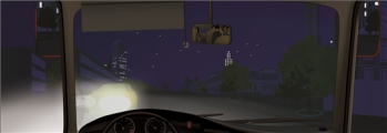 122.驾驶公交车夜间会车遇到图中这种情况,要警惕两车前照灯交汇处(视线盲区)的危险。