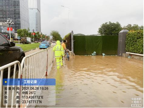 1、2021年7月30日,因突降暴雨,某市地铁车站在建出入口地平面挡水墙被积水冲垮倒塌,地表积水下泄到基坑后通过过道涌入车站。事件发生的原因是地铁排水设施不畅,遇短时强降雨致地面积水严重,冲垮在建出入口挡水设施,如图所示,致使地铁车站进水。