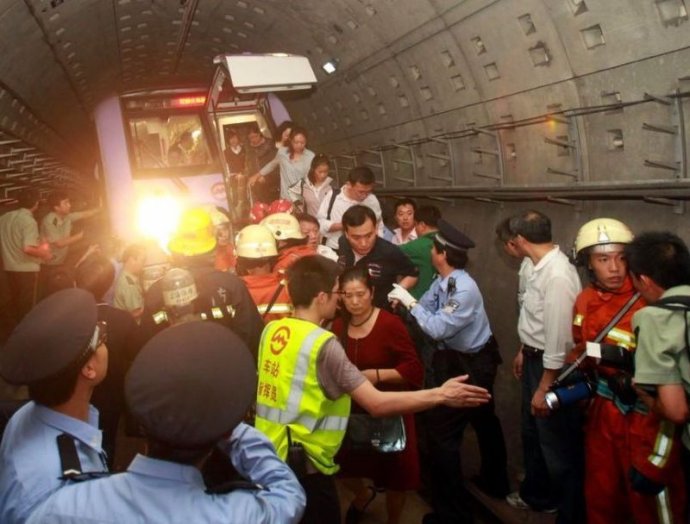 1、2003年2月18日,韩国大邱地铁列车一名乘客点燃装满汽油的塑料瓶,列车进入中央路站停车,对向列车3分钟后驶入车站,也被引燃起火。事故最终导致198人死亡,146人受伤。调查发现,列车驾驶员、车站值班员以及控制中心行车调度员在应急处置时均有严重失职。