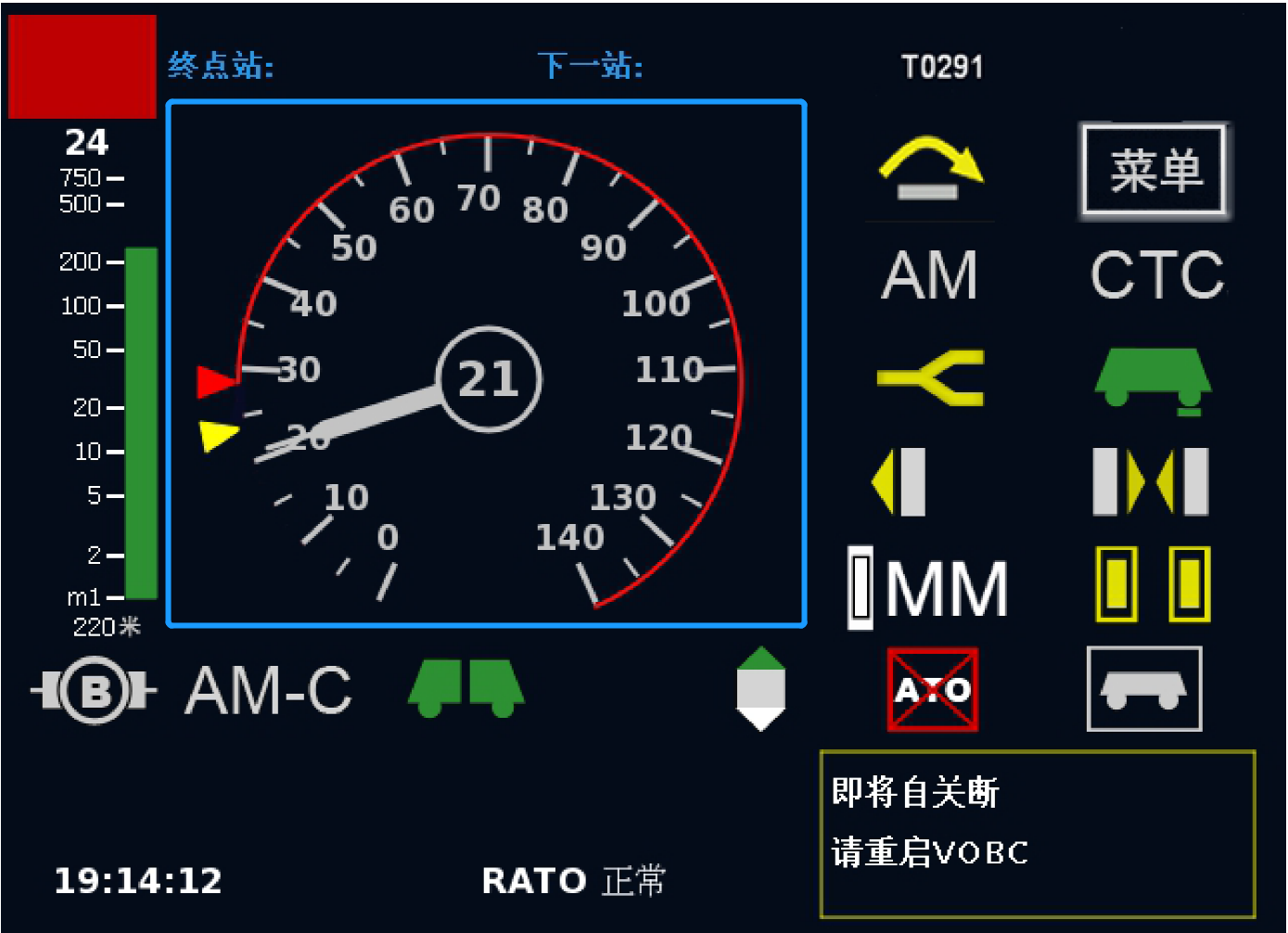1、根据《城市轨道交通信号系统运营技术规范(试行)》,城市轨道交通车载信号人机界面如下图所示,图中蓝色方框中代表的是什么内容?( )