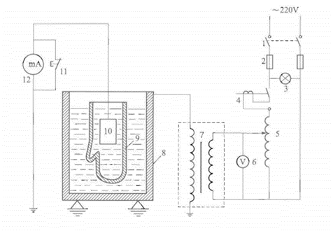 如图{题 图.jpg}绝缘手套电气试验接线图,其中8为(____)。