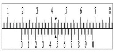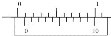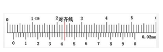 分析图中游标卡尺的分度值.精度值,并以“mm”为单位读数。