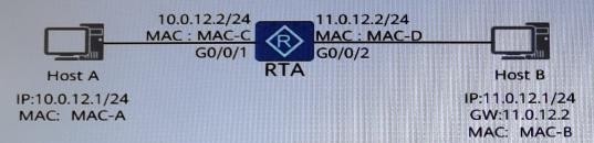 136. 如下图所示的网络,主机A没有配置网关,主机B存在网关的ARP缓存,在主机A使用命令 ping 11.0.12.1,下列说法正确的有? (单选)相关题目