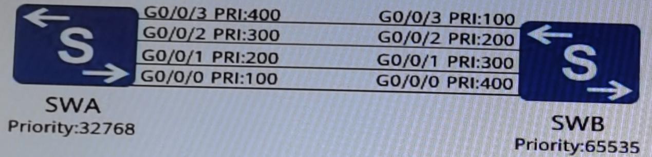 256.LACP 协议优先级如图所示,交换机 A 和交换机 B 采用 LACP 模式的链路聚合,并且所有