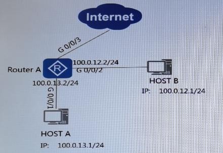 145.如图所示的网络,通过以下哪些配置可以实现主机A可以访问Intenet,而主机B不可以访问?(多选)