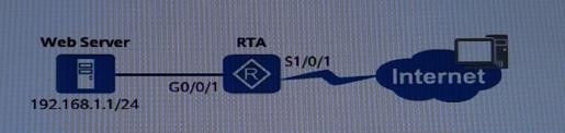 93.如图所示,私有网络中有一台Web服务器需要向公网用户提供HTTP服务,因此网络管理员需要在网关路由器RTA上配置NAT以实现需求,则下面配置中能满足需求的是(单选)。