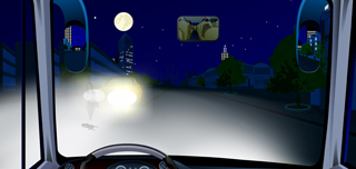 702.夜间会车遇到这种情况要警惕两车前照灯交汇处(视线盲区)的危险。(图3.8.8)