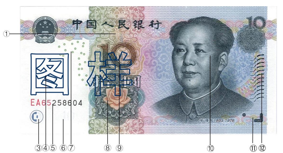7、10元,下列选项中对图片上标⑫防伪特征名称描述正确的是()。