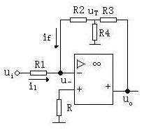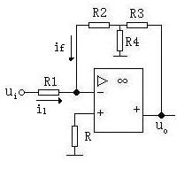 14、为了用低值电阻得到高的电压放大倍数,可用下图中的T形网络代替反馈电阻Rf,试求电压放大倍数Au?
