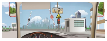 31.驾驶公交车通过图中这个铁路道口时要减速停车。( )