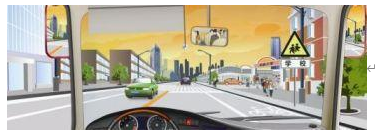 12.驾驶公交车在学校区域遇到图中这种情况,安全通行的方法是( )。