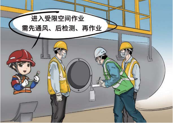 1.(判断题)针对上图请判断,有限空间作业应当严格遵守“先通风、再检测、后作业”的原则。