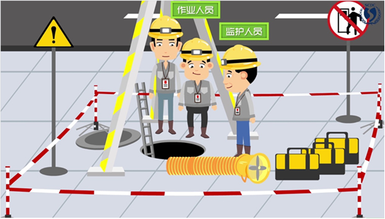 1、案例八、根据《安徽省有限空间作业安全管理与监督暂行规定》(皖安办〔2020〕75号)针对下图,请指出有限空间作业安全管理正确做法。