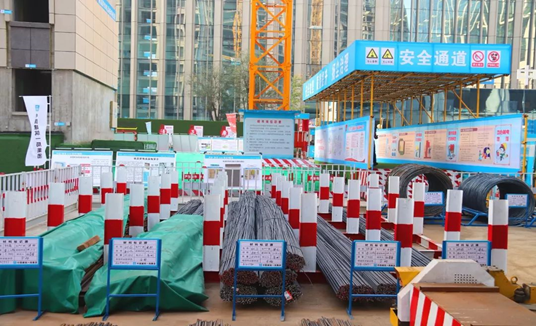 1.(判断题)针对上图请判断,文明工地建设材料管理时,建筑材料、构件、料具应按总平面布局进行码放。