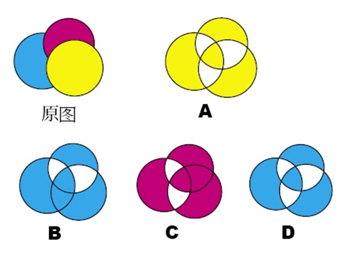 如下图所示,A图所示的图形当执行了路径寻找器(路径管理员)中所标记的命令时,可以得到结果为: