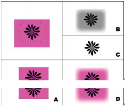 下图左上角图形用羽化的矩形选区选中(图中虚框显示),将其定义为画笔存储;以下说法正确的是:()