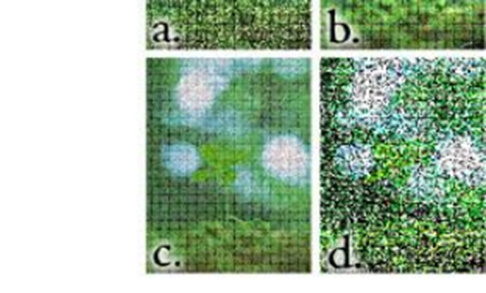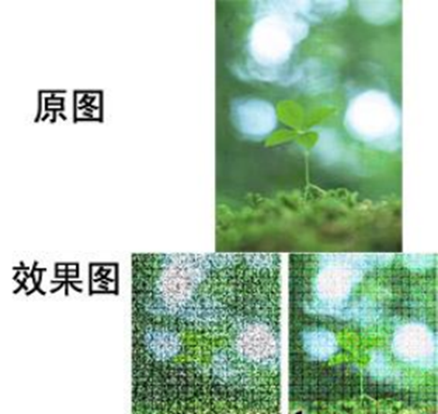 在下列四幅效果图中,哪幅运用了“滤镜”>“像素化”>“铜板雕刻”?
