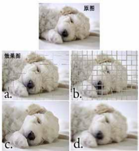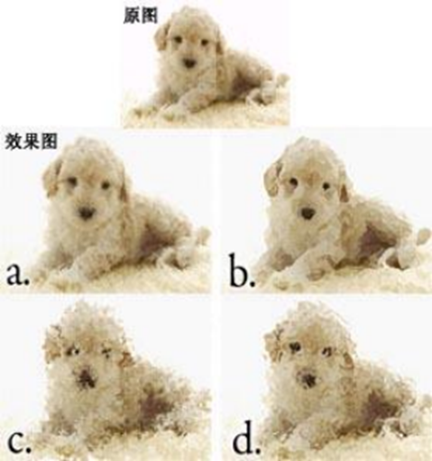 在下列四幅效果图中,哪幅运用了“滤镜”>“像素化”>“铜板雕刻”?