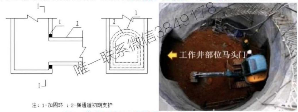 2.马头门施工技术( )竖井初期支护施工至马头门处应预埋暗梁及暗桩,并应沿马头门拱部外轮廓线打入超前小导管,注浆加固 地 层 。(4)马头门的开挖应分段破除竖井井壁,宜按照先拱部、再侧墙、最后底板的顺序破除。