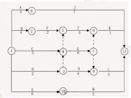 27.某双代号网络计划如下图(时间:天),下列路线中,属于关键路线的是( )。