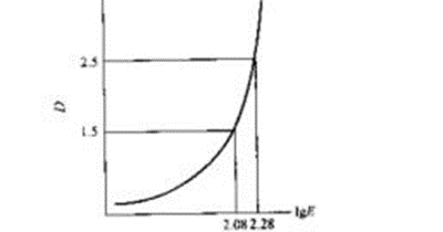 22、某胶片特性曲线所示,给定曝光量15mA·min,被检区黑度为1.5,现为提高对比度,欲将黑度提高到2.5,求所需曝光量。( )