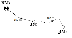 23.下图为某附合水准线路,试述按二等水准测量技术要求采用手工记录的外业观测过程(写出必要的外业技术要求指标)。