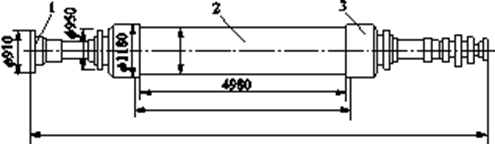 1、 QFSN-300-2型汽轮发电机转子外形如图E-57所示,全长10900mm,外径为1100mm,转子轴正向中间5150mm长的部分是本体,两头其他部分为转轴,请在图中标注,将未标注出的尺寸补齐,并指出各部件名称。