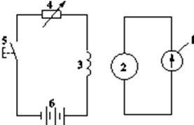 图E-59 1—毫伏计;2—电枢;3—励磁线圈;4—可调电阻;5—按钮;6—蓄电池(6~12V)