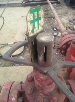 17. [JXJK211-01-X] 某施工井节流管汇中一闸门如图,该闸门存在主要问题为( )。