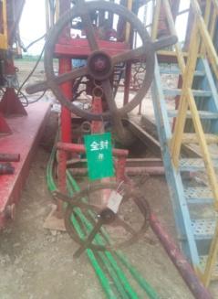 9. [JXJK182-03-X] 该图为某施工井防喷器锁紧装置及标识牌,该锁紧装置及标识牌中缺少( )内容。