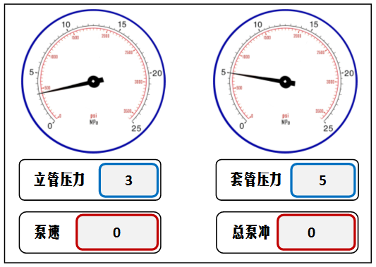 64. [JXJK043-01-Y] 发生溢流关井后,求取的立压与套压如图所示,之前测得的压井泵速25冲/min时的循环立压为3MPa,则进行工程师法压井作业时的初始循环总压力为( )MPa。