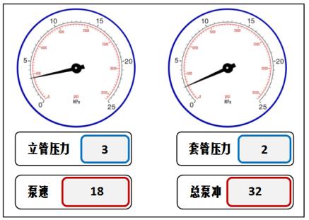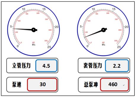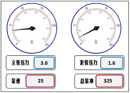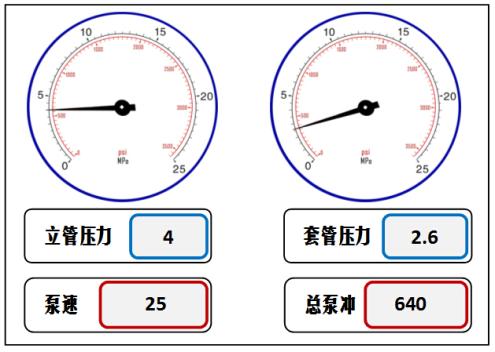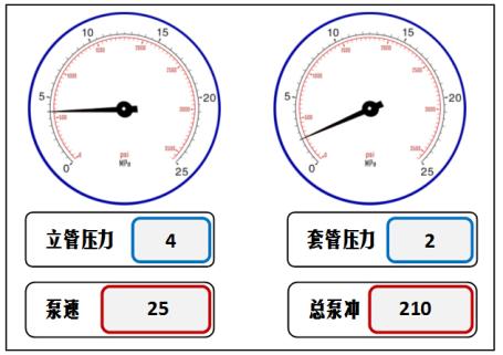 39. [JXJK043-01-Y] 发生溢流关井后,求取的立压与套压如图所示,之前测得的压井泵速25冲/min时的循环立压为3MPa,则进行压井作业时的初始循环总压力为( )MPa。