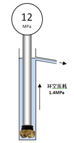 75. [JXJK022-01-Z] 如图所示,某井停止循环时,井底压力为35.2MPa,开泵循环时泵压12MPa,修井液沿环空向上流动时所产生的压力损失(环空压耗)为1.4MPa,此时井底压力为( )MPa。