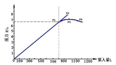 77. [JXJK022-01-Y] 如图所示,进行地层破裂压力试验的曲线图,( )点的压力值为地层破裂压力。