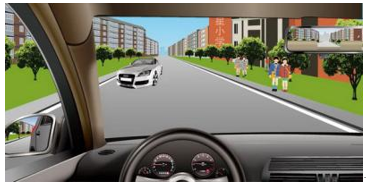 如图所示,驾驶机动车遇到这种情况,不仅要控制车辆留出会车空间,而且要注意与右侧的儿童保持足够的安全距离。