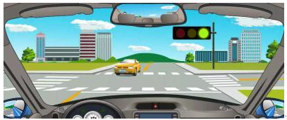 在路口直行看到图中这种情况,要在停止线以外停车,等待对面直行车通过后再起步。