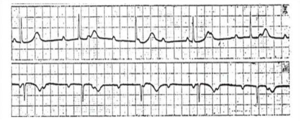 195. 女,75 岁,原发性高血压,冠心病。心电图检查如图所示。该患者可诊断为