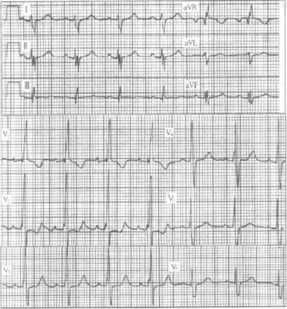 194. 男,17 岁,先天性心脏病(房间隔缺损)。心电图检查如图所示。该患者可诊断为