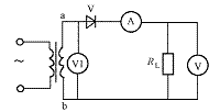 39. 如图D-20所示电路中,已知RL=82,电压表V的读数为110V。试求:(1)直流安培表A的读数;(2)交流伏特表V1的读数;(3)二极管所承受的最高反向电压。