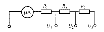 33. 有一块表头的量程是100A,内阻Rg=1k,如把它改装成一个量程为3、30V和300V的多量程伏特表,内部接线如图D-19所示,求R1和R2+R3的数值。