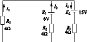 24. 已知条件如图D-12所示,求各支路电流I1、I2、I3。