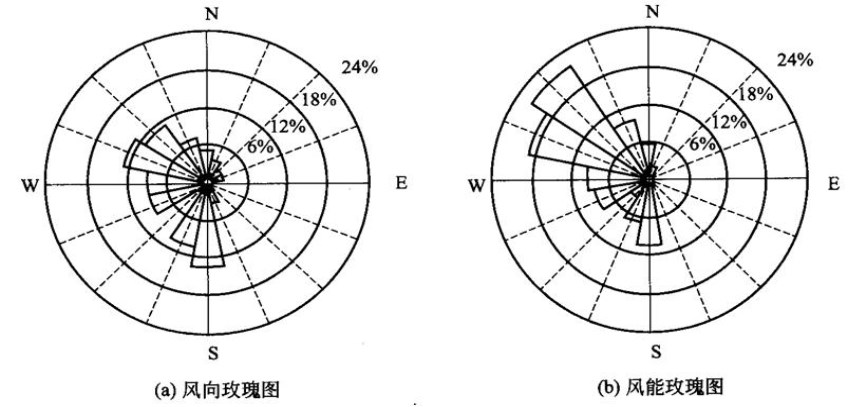 310.下图为某地区一个测风周期内的风向玫瑰图和风能玫瑰图,从图中 可看出,该地区的最大风能方向为( )。