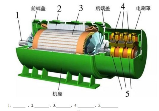 2. 请写出下图中永磁同步发电机 1-5 的构造的名称