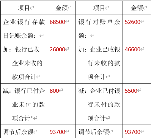11.资料:XX公司2019年6月30日银行存款日记账余额68500元,6月底公司与银行往来的其余资料如下:(1)6月30日收到购货方转账支票一张,金额为16600元,已经送存银行,但银行尚未入账。(2)本公司当月的水电费用800元银行已代为支付,但公司未接到通知而尚未入账。(3)本公司当月开出的用以支付供货货款的转账支票,尚有5500元未兑现。(4)本公司送存银行的某客户转账支票30000元,因对方存款不足而被退票,而公司未接到通知。(5)公司委托银行代收的款项26000元,银行已入本公司的存款户,但本公司尚未收到通知入账。假定公司与银行的存款余额调整后核对相符。要求:请代XX公司完成以下银行存款余额调节表的编制。银行余额调节表XX公司2019年6月30日单位:元
