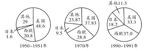 84.(2019·四川中考真题)下图反映了20世纪中叶到90年代初美、日、西欧在世界工业生产中所占比重(%)的变化,对此解读正确的是【 】
