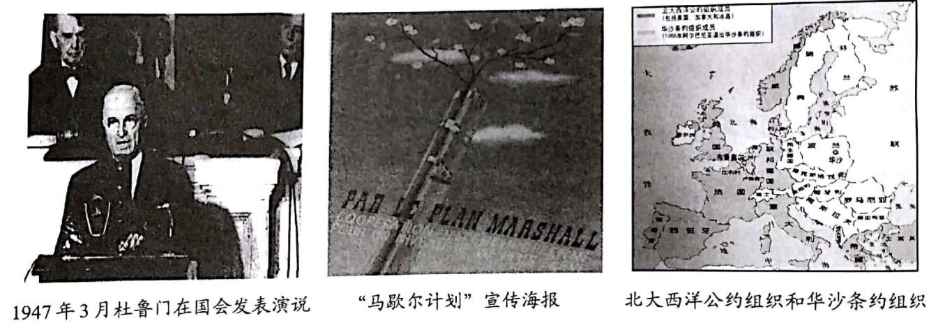 61.(2015·山东济宁市·中考真题)第二次世界大战结束后,美国推行了“遏制”社会主义国家的冷战政策,美苏战时同盟关系逐渐破裂,两极格局由此形成,形成的标志是【 】